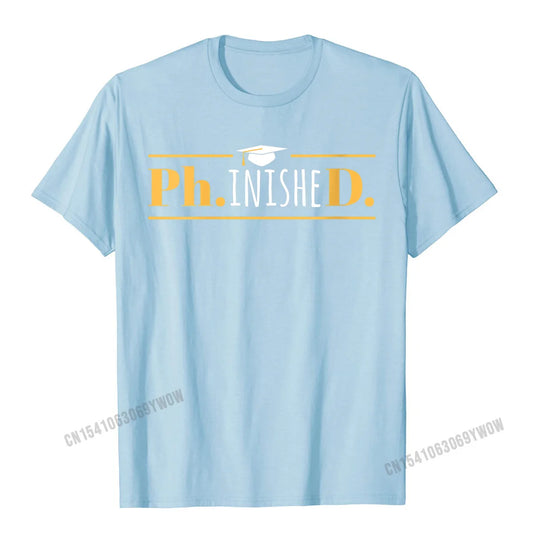 Womens PhinisheD - Funny Doctorate PhD Graduation O-Neck T-Shirt Camisas Men Cool Birthday Tees Funny Cotton Men Top T-Shirts